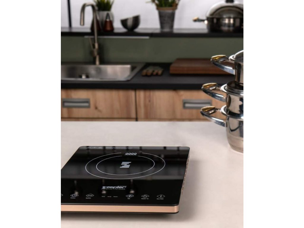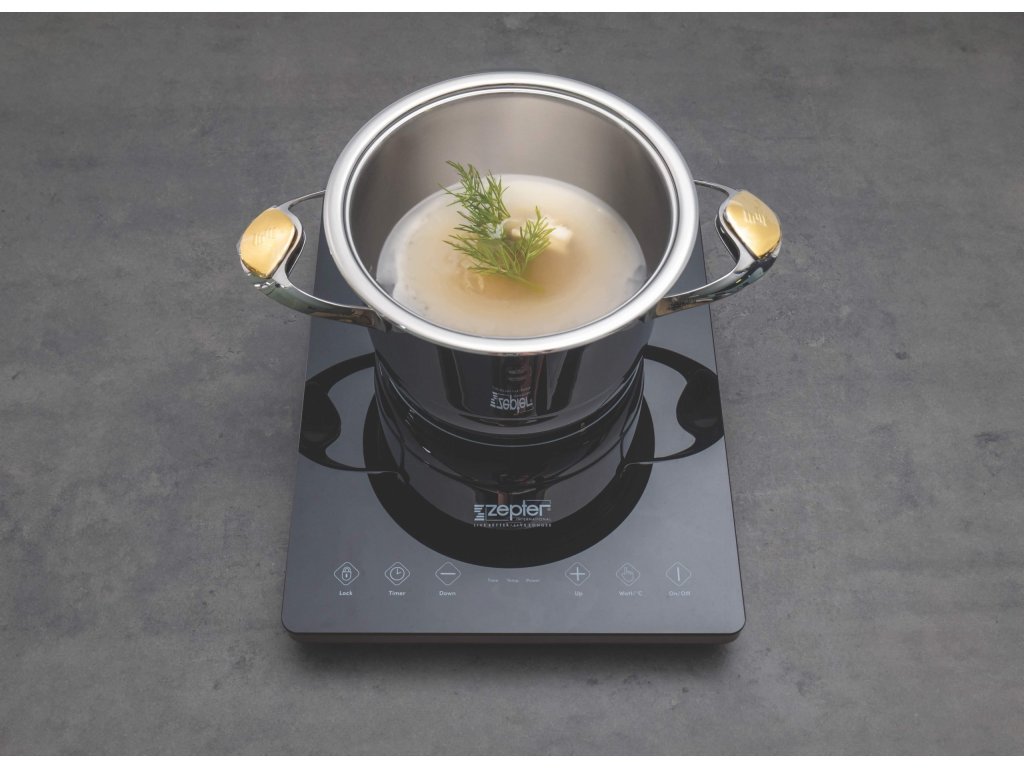 - Bezpečnost především: Indukční vařič Zepter upřednostňuje bezpečnost. Povrch zůstává chladný na dotek a je aktivována funkce automatického vypnutí, když je nádobí je odstraněno z desky.